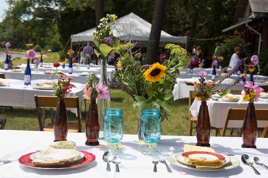 I met up with Crystal and all the girls in the family on Wednesday, the day before the big day, to pick wildflowers at Omena Cut Flowers along M22 about 2 miles north of Sutton’s Bay for the bouquets and decorations. When I asked Crystal if she’d ever made bouquets before she said, “Nah, but it can’t be too hard, right?” and from what she produced for Thursday, it appears she has a knack for it!